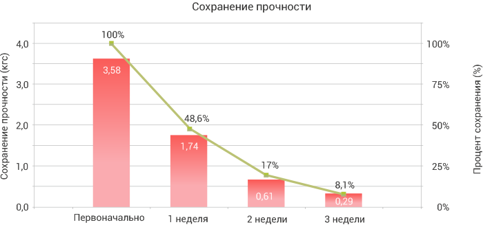 Сохранение прочности in vitro: Приблизительно на 45 % за 1 неделю